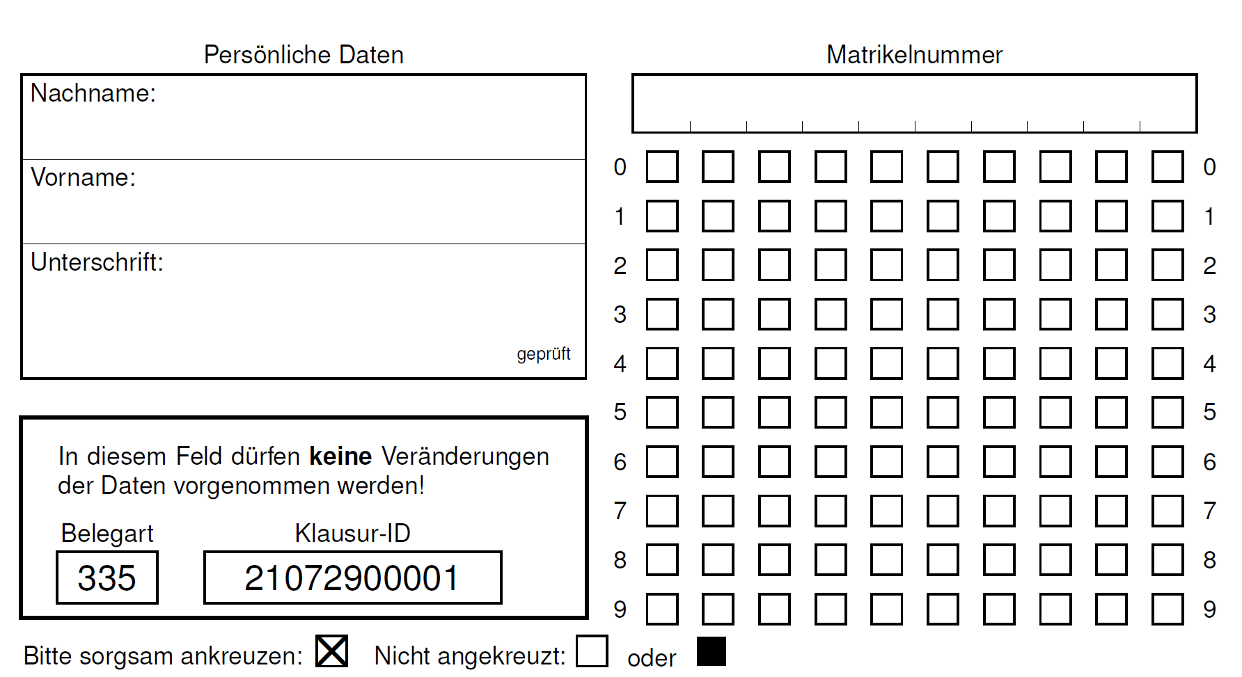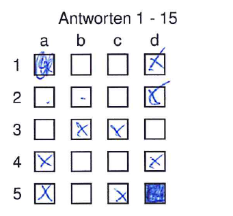 Nur deutlich erkennbare und positionsgenaue Markierungen werden ausgewertet!”